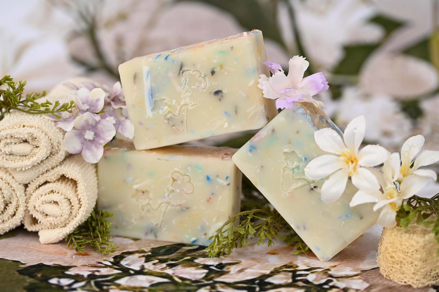 All soaps are 100% hand-made. The ingredients are combined manually, poured into forms, cut and decorated by hand. Therefore, they may differ slightly in shape or colour. However, the recipe is the same for each batch and equally delicate, foamy and efficient.